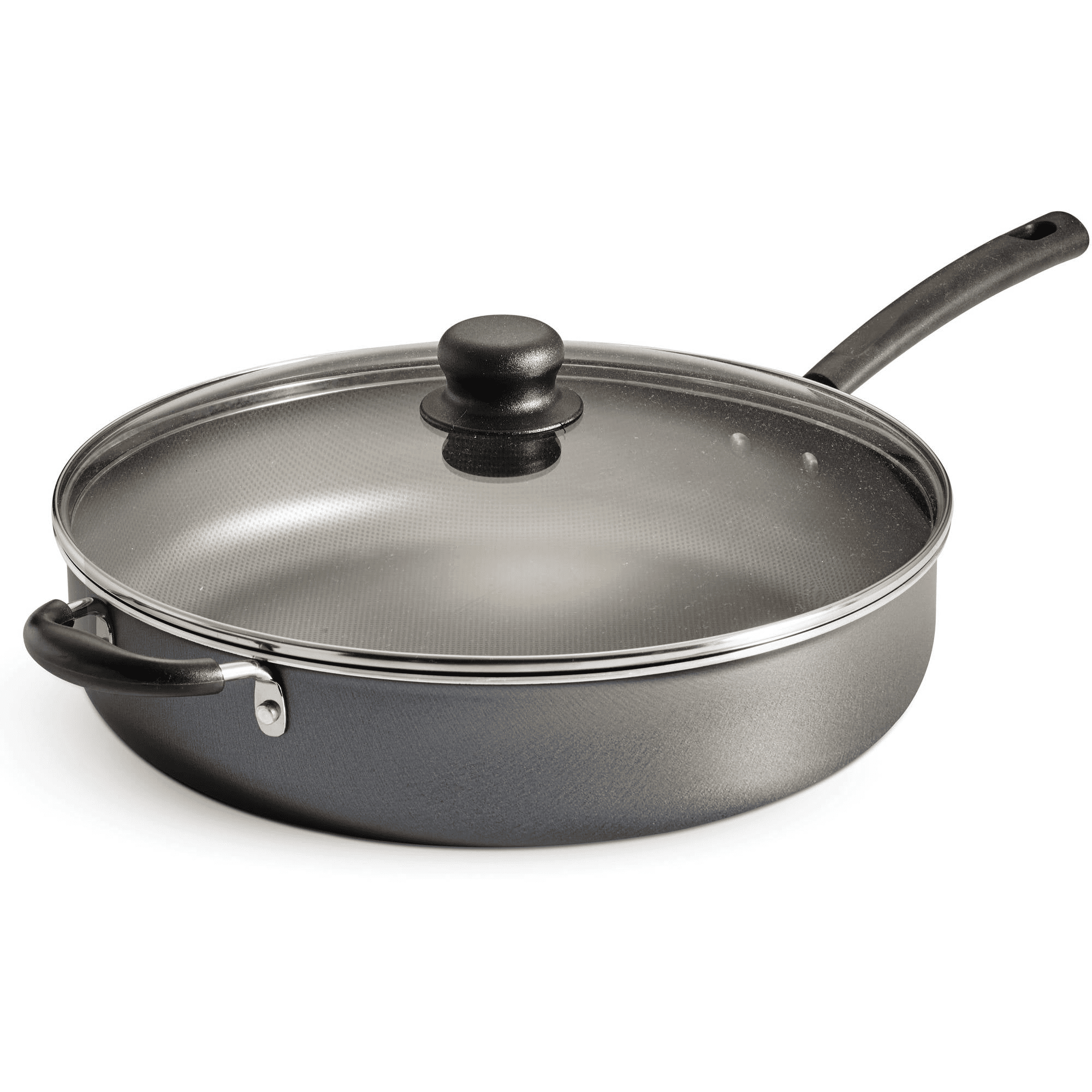 Tramontina's PrimaWare 5-Quart Steel Gray Nonstick Covered Jumbo Cooker has a generous capacity and cooking surface, making it ideal for one-pot meals and frying foods. This 5-Quart Jumbo Cooker is a great addition to any basic cookware set. It is a great size pan to saute vegetables and several varieties of meats for all your favorite dishes. This nonstick jumbo cooker is coated with DuPont Teflon Classic Nonstick Coating, so you will not have to worry about your food getting stuck to the bottom of the pan. This Teflon Pan also features a stay-cool handle. Tramontina PrimaWare 5-Quart Steel Gray Nonstick Covered Jumbo Cooker is dishwasher safe and it is also compatible with electric, gas and ceramic glass cooktops, allowing you to use it with a wide variety of kitchen appliances.